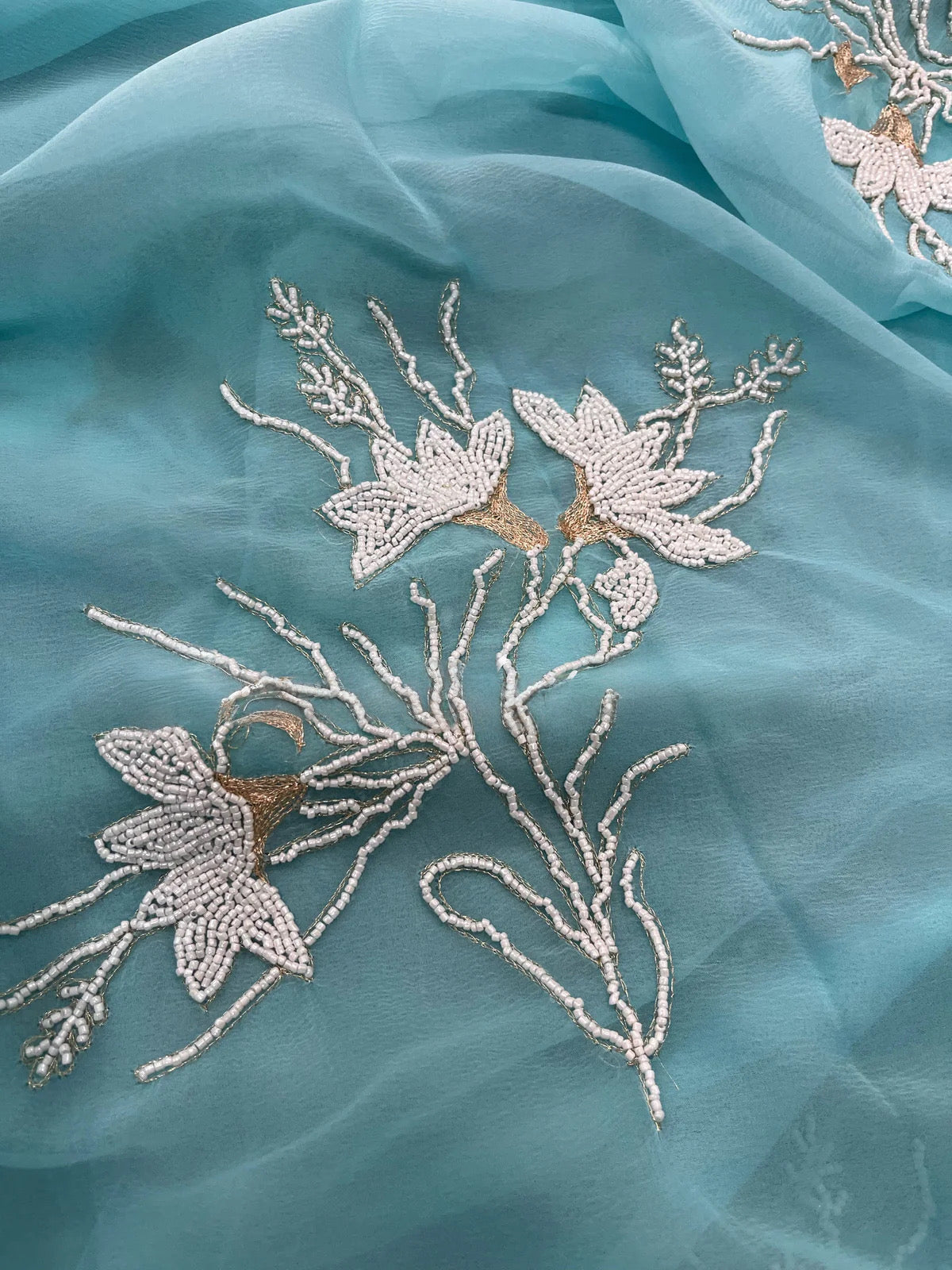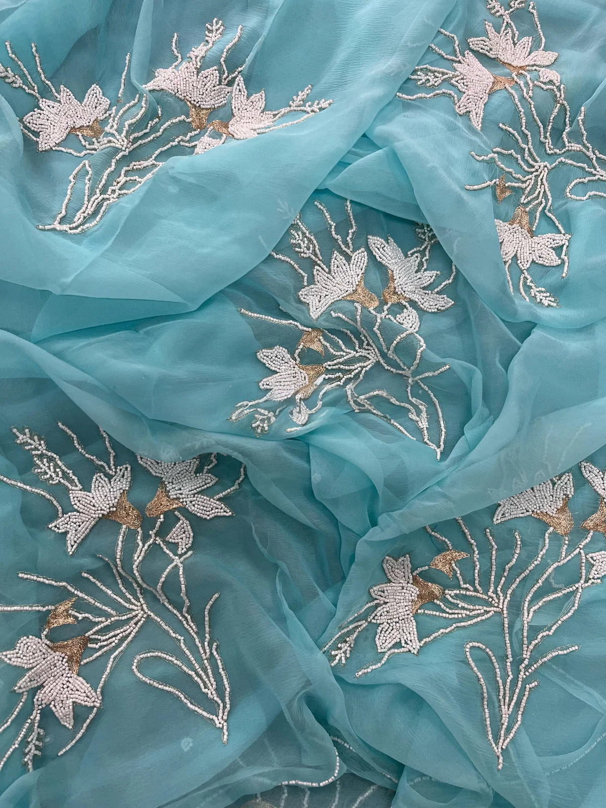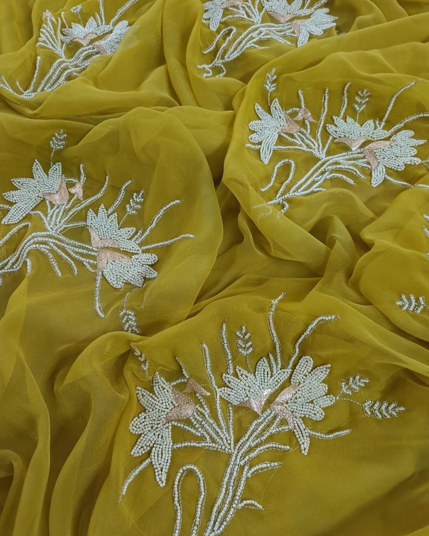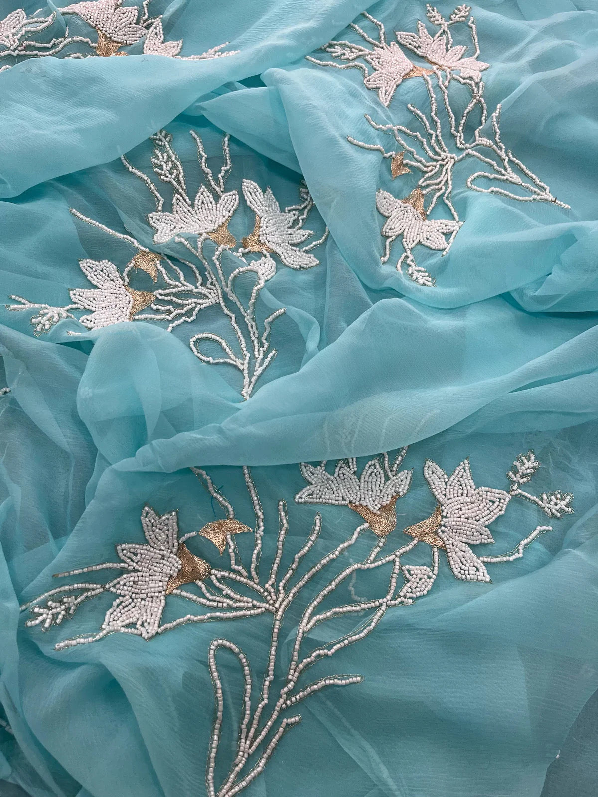 Elevate your style with our Hand Embroidered aari work Chiffon saree. Crafted with intricate hand embroidery, this saree is a timeless piece of art. Made with high-quality chiffon, it offers both elegance and comfort. Perfect for any occasion, this saree is a must-have addition to your wardrobe.