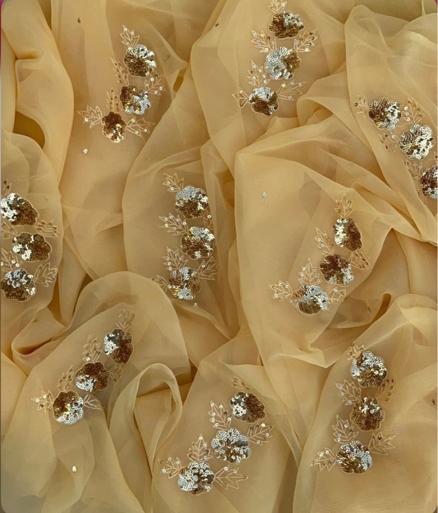 Beige golden sequins buta saree