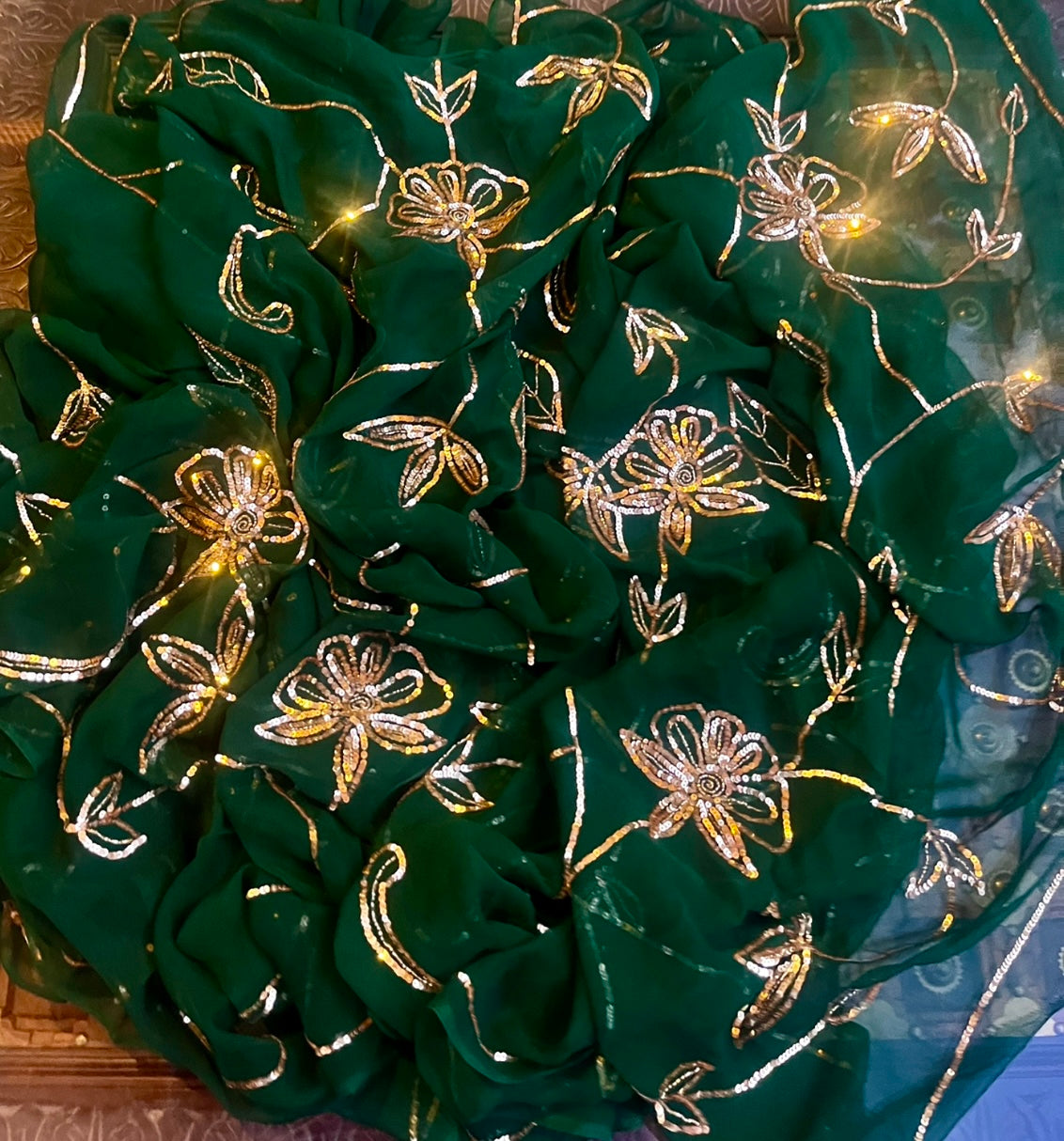 Elevate your style with our Hand Embroidered aari work Chiffon saree. Crafted with intricate hand embroidery, this saree is a timeless piece of art. Made with high-quality chiffon, it offers both elegance and comfort. Perfect for any occasion, this saree is a must-have addition to your wardrobe.