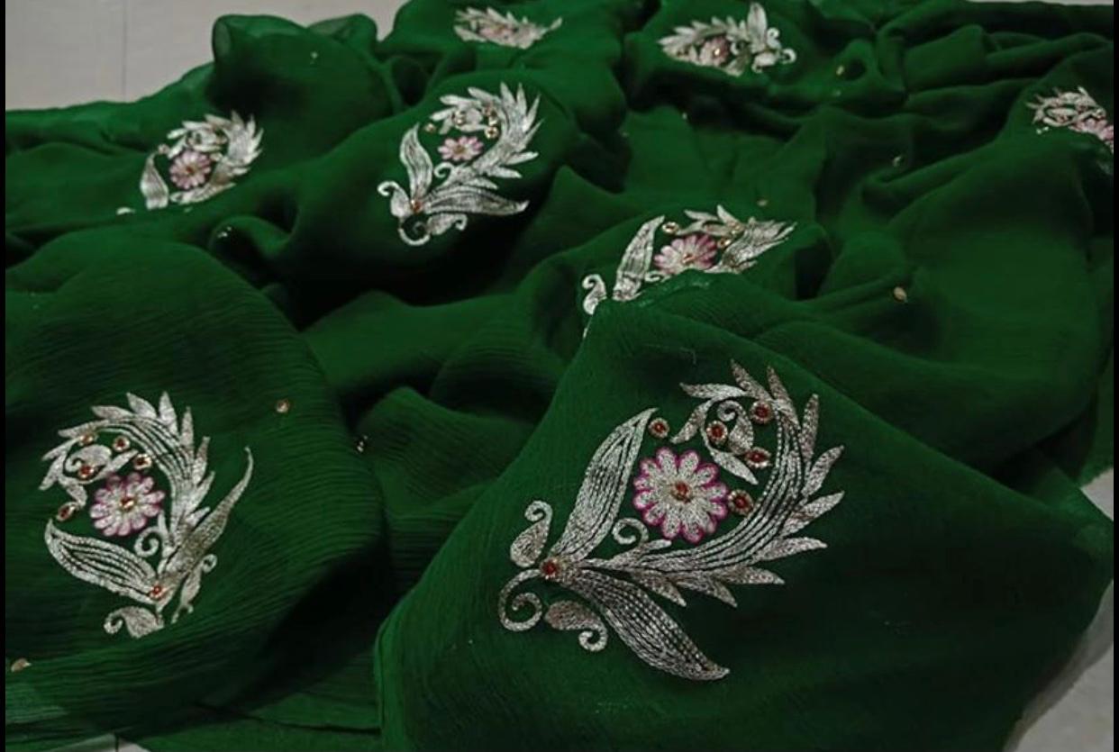 Elevate your style with our Hand Embroidered aari work Chiffon saree. Crafted with intricate hand embroidery, this saree is a timeless piece of art. Made with high-quality chiffon, it offers both elegance and comfort. Perfect for any occasion, this saree is a must-have addition to your wardrobe.