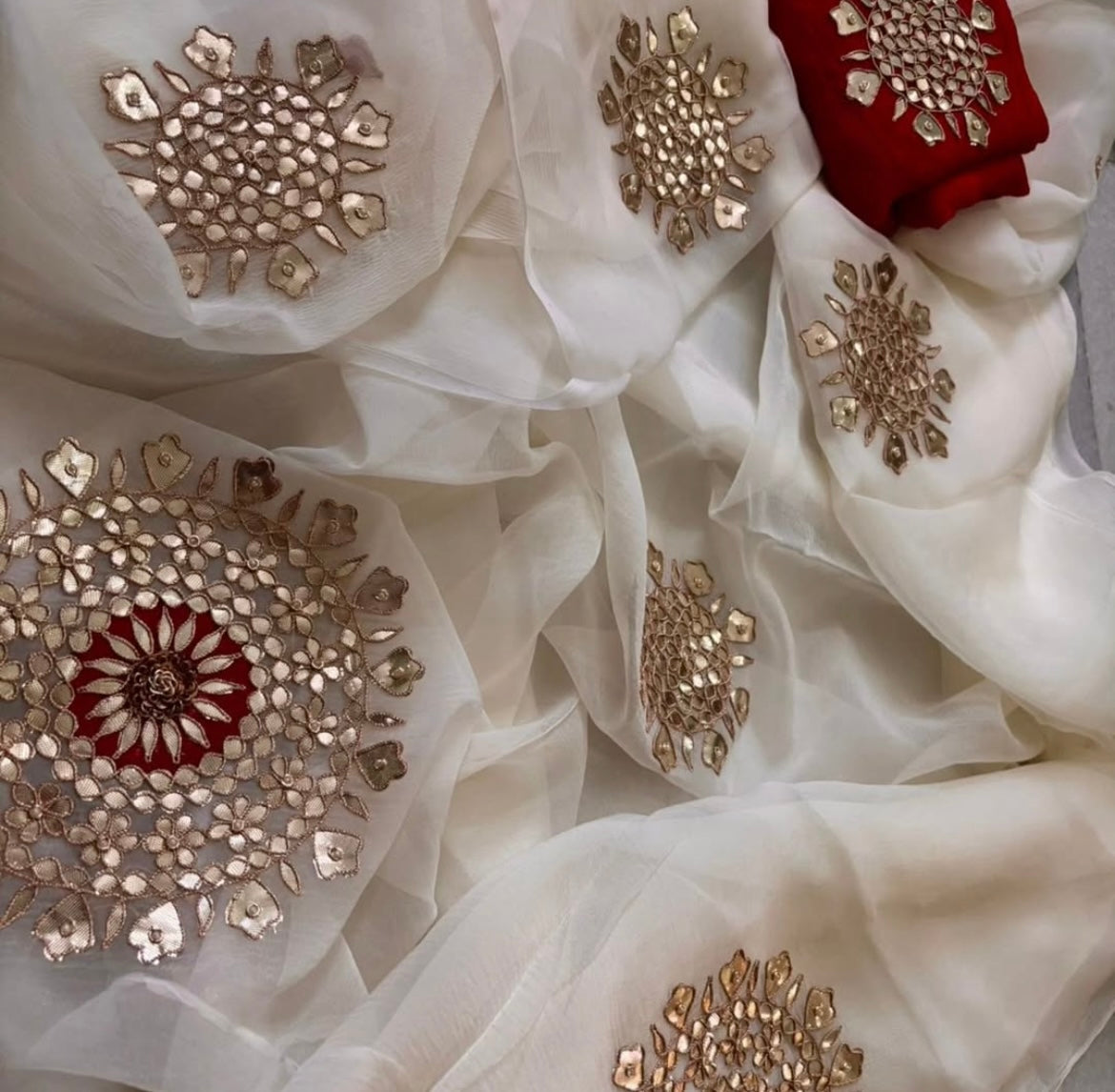 Cream rangoli buta saree