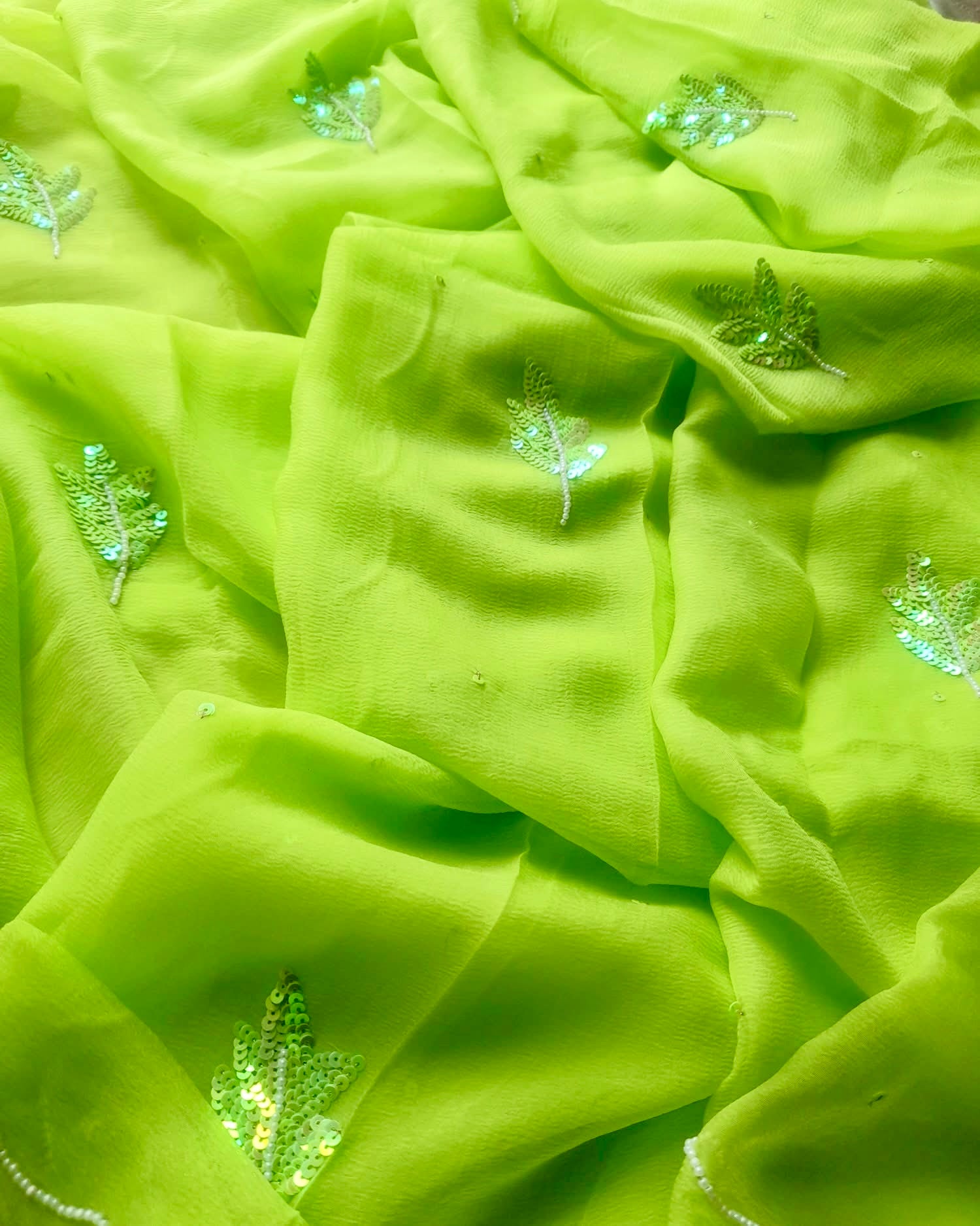 Elevate your style with our Hand Embroidered aari work Chiffon saree. Crafted with intricate hand embroidery, this saree is a timeless piece of art. Made with high-quality chiffon, it offers both elegance and comfort. Perfect for any occasion, this saree is a must-have addition to your wardrobe.