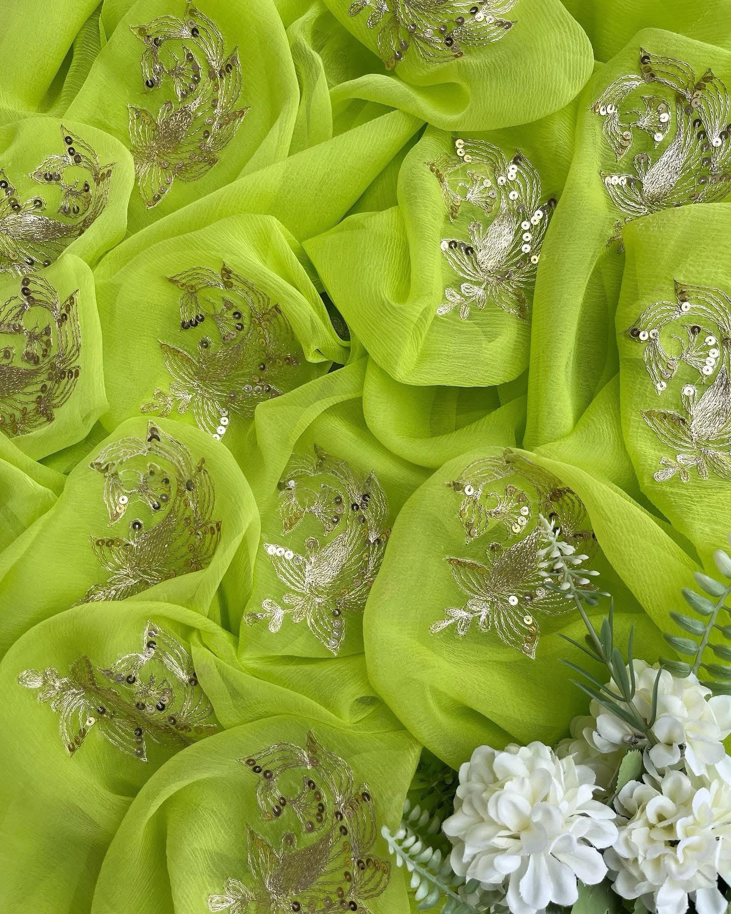 Elevate your style with our Hand Embroidered aari work Chiffon saree. Crafted with intricate hand embroidery, this saree is a timeless piece of art. Made with high-quality chiffon, it offers both elegance and comfort. Perfect for any occasion, this saree is a must-have addition to your wardrobe.