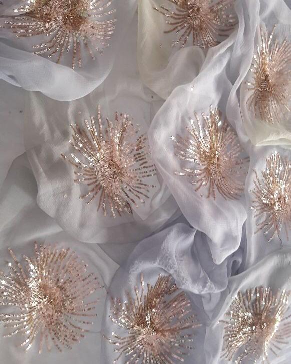 Elevate your style with our Hand Embroidered aari work Chiffon saree. Crafted with intricate hand embroidery, this saree is a timeless piece of art. Made with high-quality chiffon, it offers both elegance and comfort. Perfect for any occasion, this saree is a must-have addition to your wardrobe.