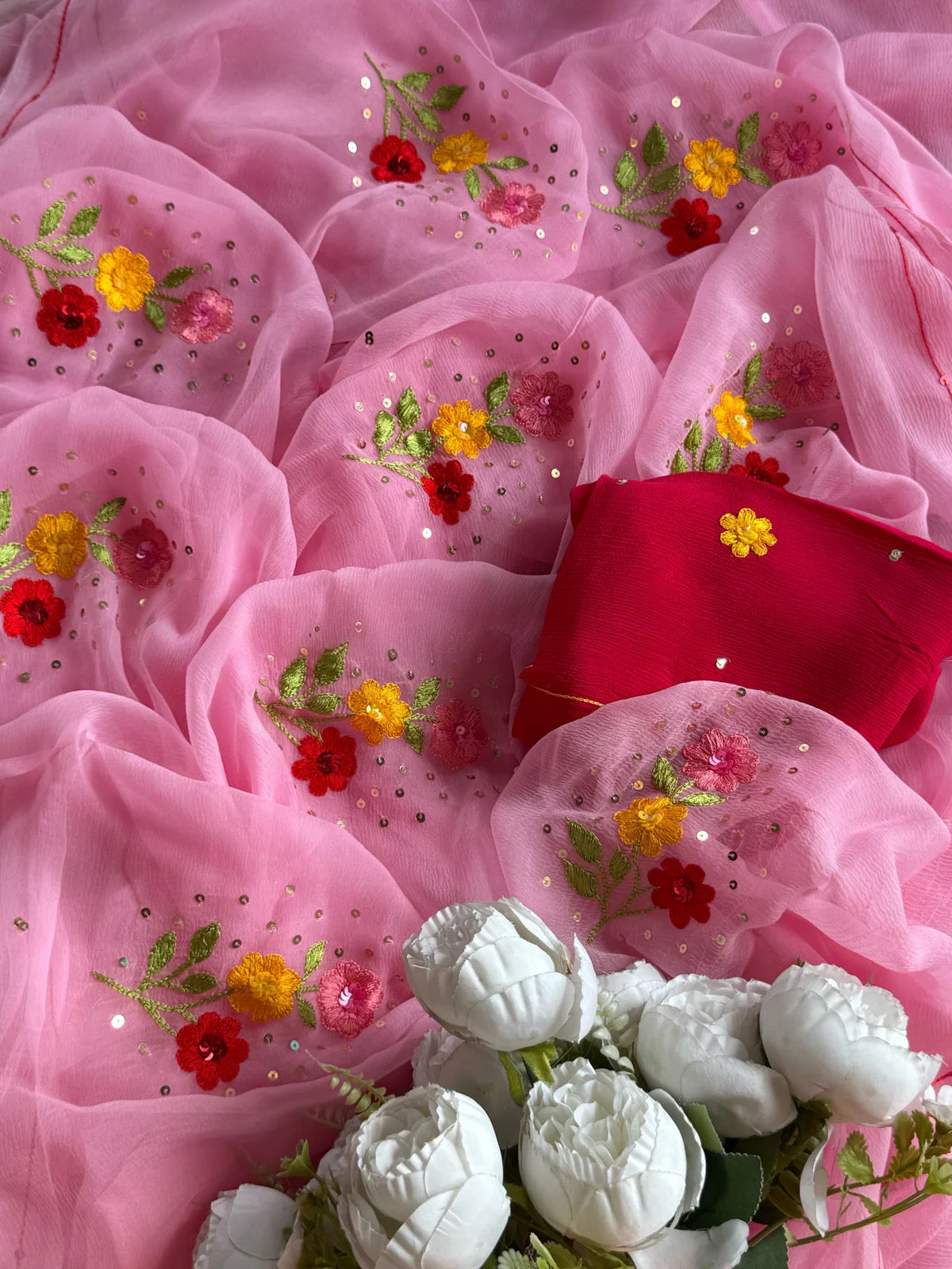 Elevate your style with our Hand Embroidered aari work Chiffon saree. Crafted with intricate hand embroidery, this saree is a timeless piece of art. Made with high-quality chiffon, it offers both elegance and comfort. Perfect for any occasion, this saree is a must-have addition to your wardrobe.