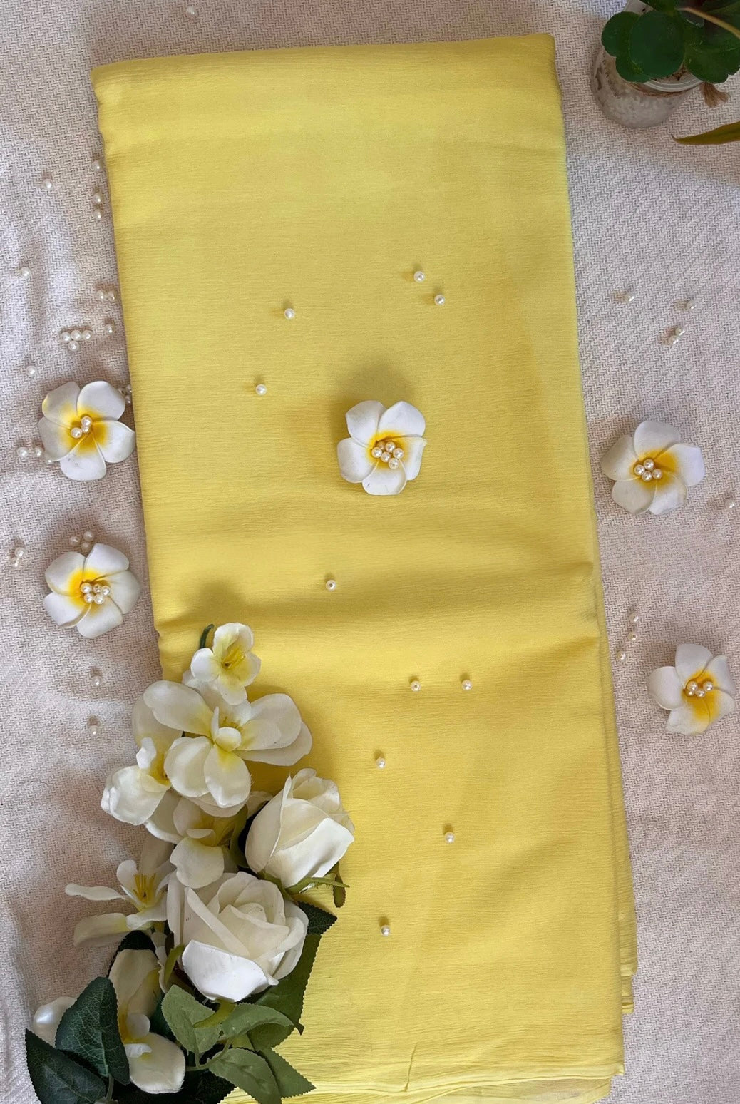 Elevate your style with our Hand Embroidered aari work Chiffon saree. Crafted with intricate hand embroidery, this saree is a timeless piece of art. Made with high-quality chiffon, it offers both elegance and comfort. Perfect for any occasion, this saree is a must-have addition to your wardrobe.