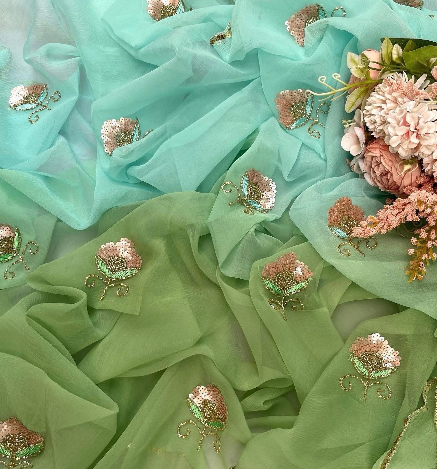 Elevate your style with our Hand Embroidered aari work Chiffon saree. Crafted with intricate hand embroidery, this saree is a timeless piece of art. Made with high-quality chiffon, it offers both elegance and comfort. Perfect for any occasion, this saree is a must-have addition to your wardrobe.