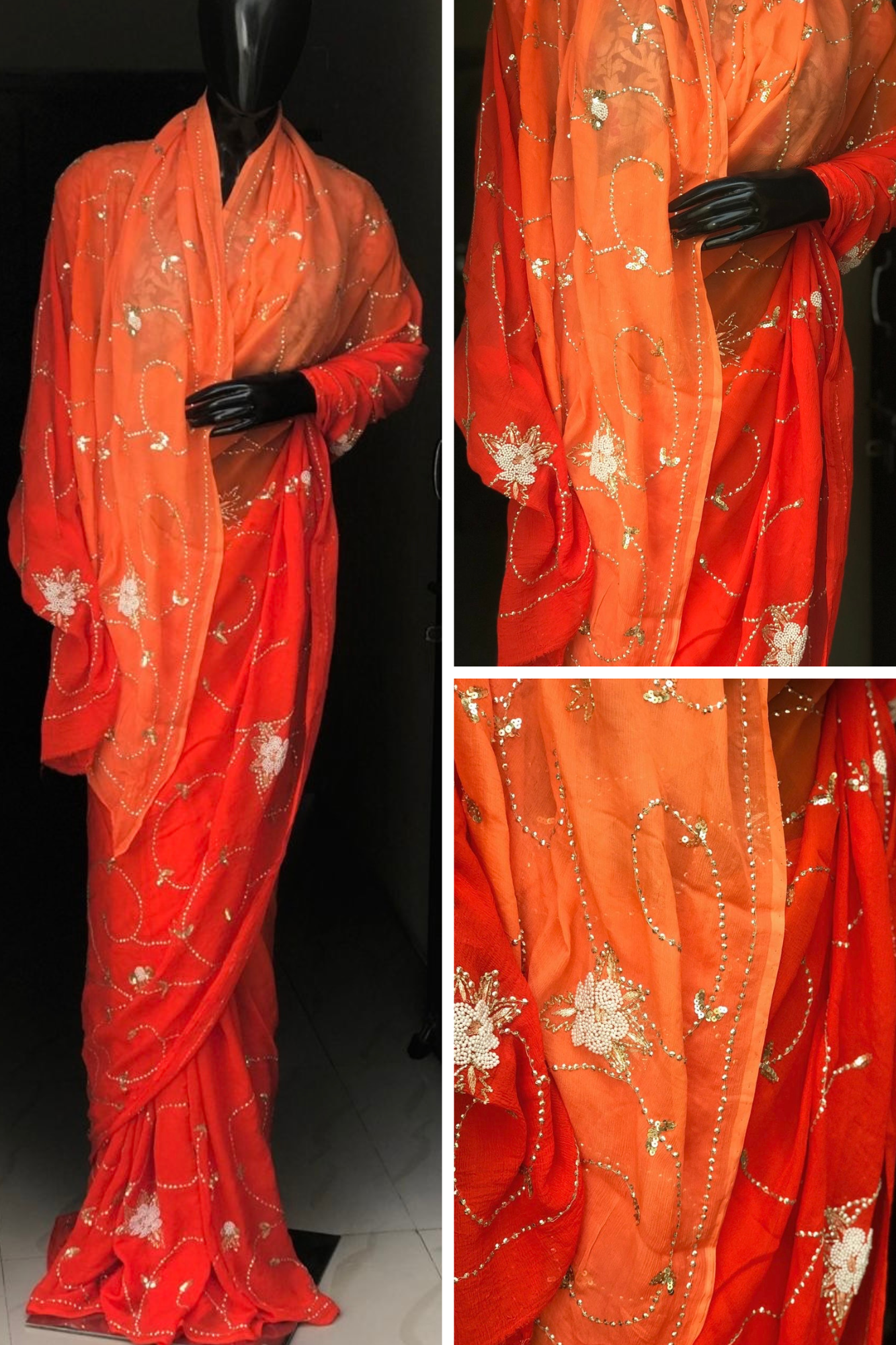 Elevate your style with our Hand Embroidered aari work Chiffon saree. Crafted with intricate hand embroidery, this saree is a timeless piece of art. Made with high-quality chiffon, it offers both elegance and comfort. Perfect for any occasion, this saree is a must-have addition to your wardrobe.