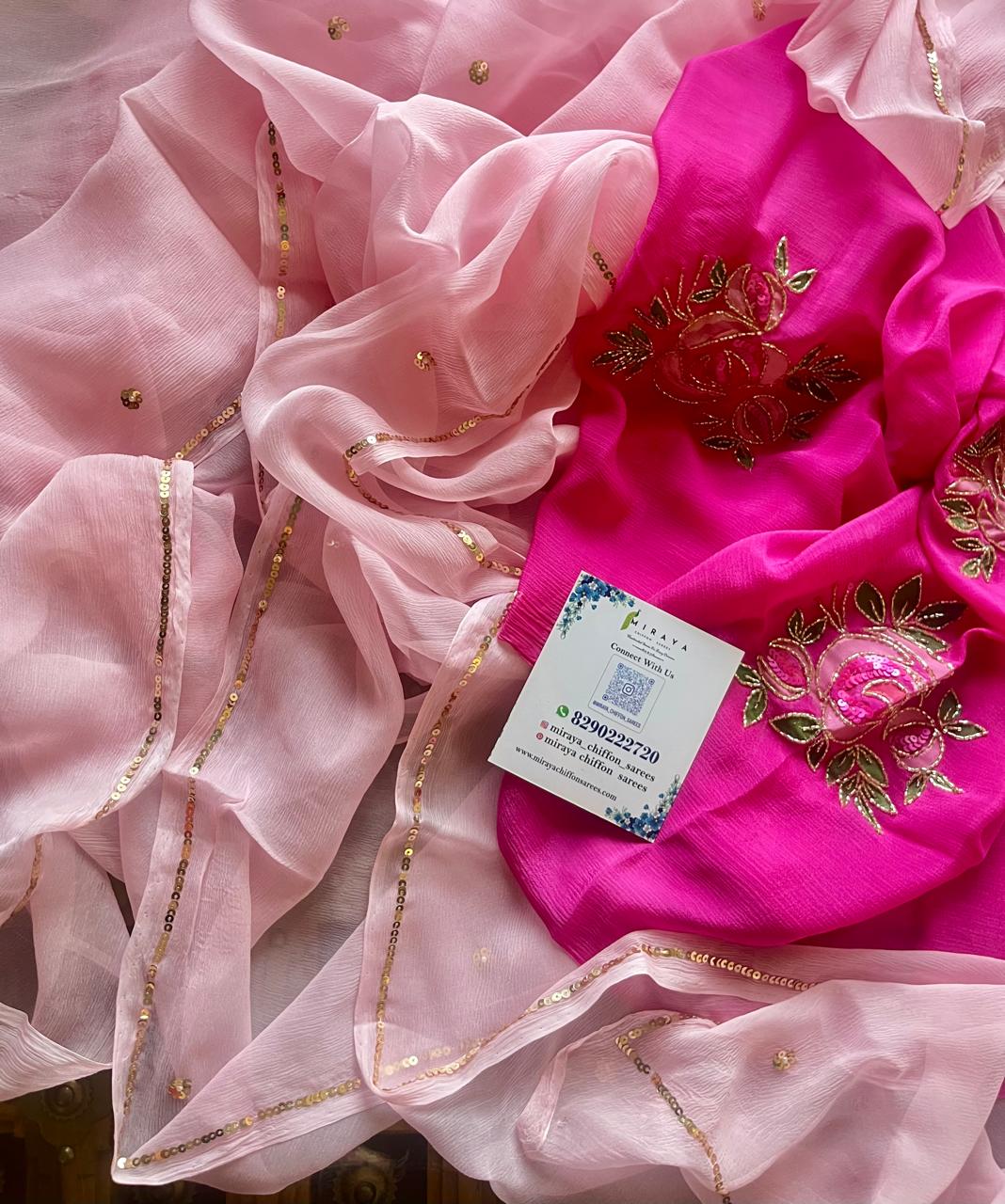 Elevate your style with our Hand Embroidered aari work Chiffon saree. Crafted with intricate hand embroidery, this saree is a timeless piece of art. Made with high-quality chiffon, it offers both elegance and comfort. Perfect for any occasion, this saree is a must-have addition to your wardrobe.
