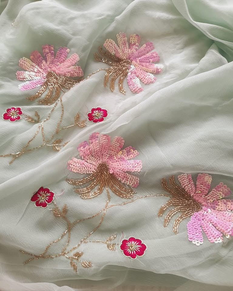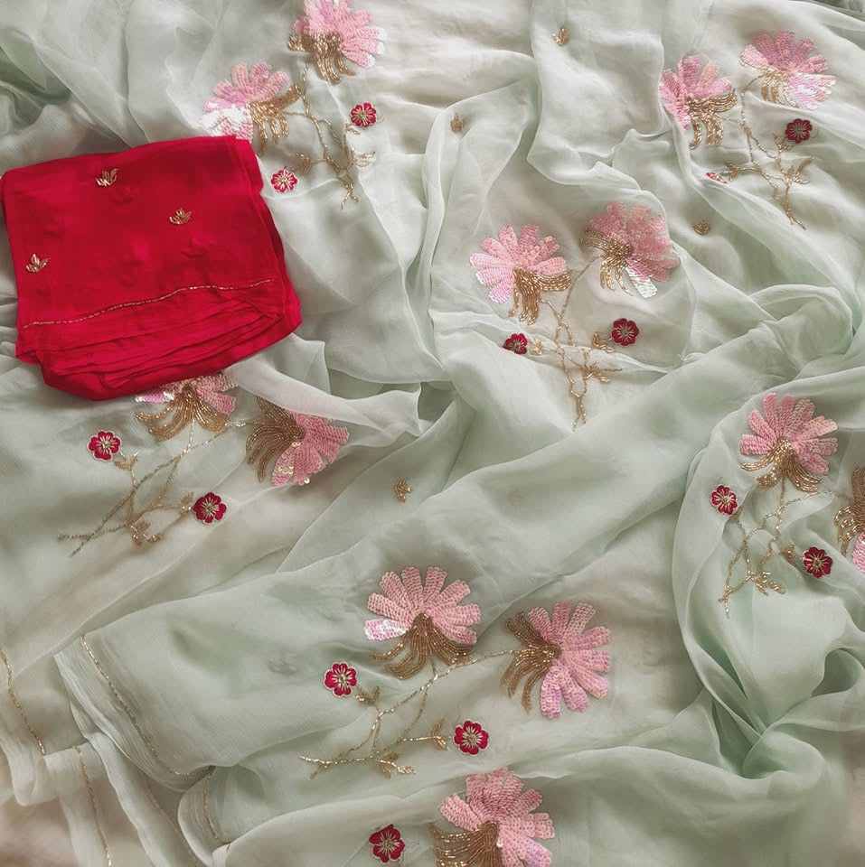 Elevate your style with our Hand Embroidered aari work Chiffon saree. Crafted with intricate hand embroidery, this saree is a timeless piece of art. Made with high-quality chiffon, it offers both elegance and comfort. Perfect for any occasion, this saree is a must-have addition to your wardrobe.