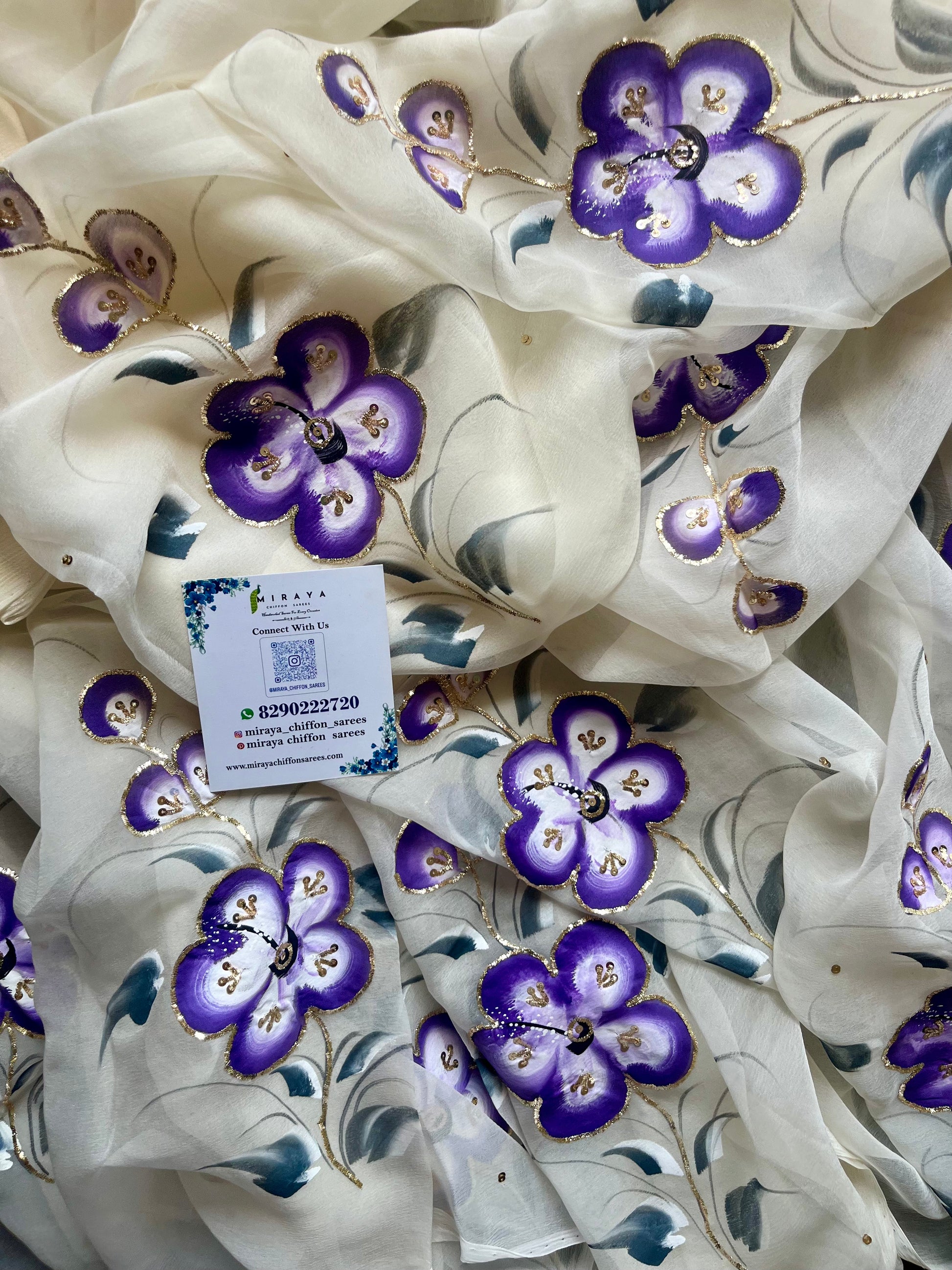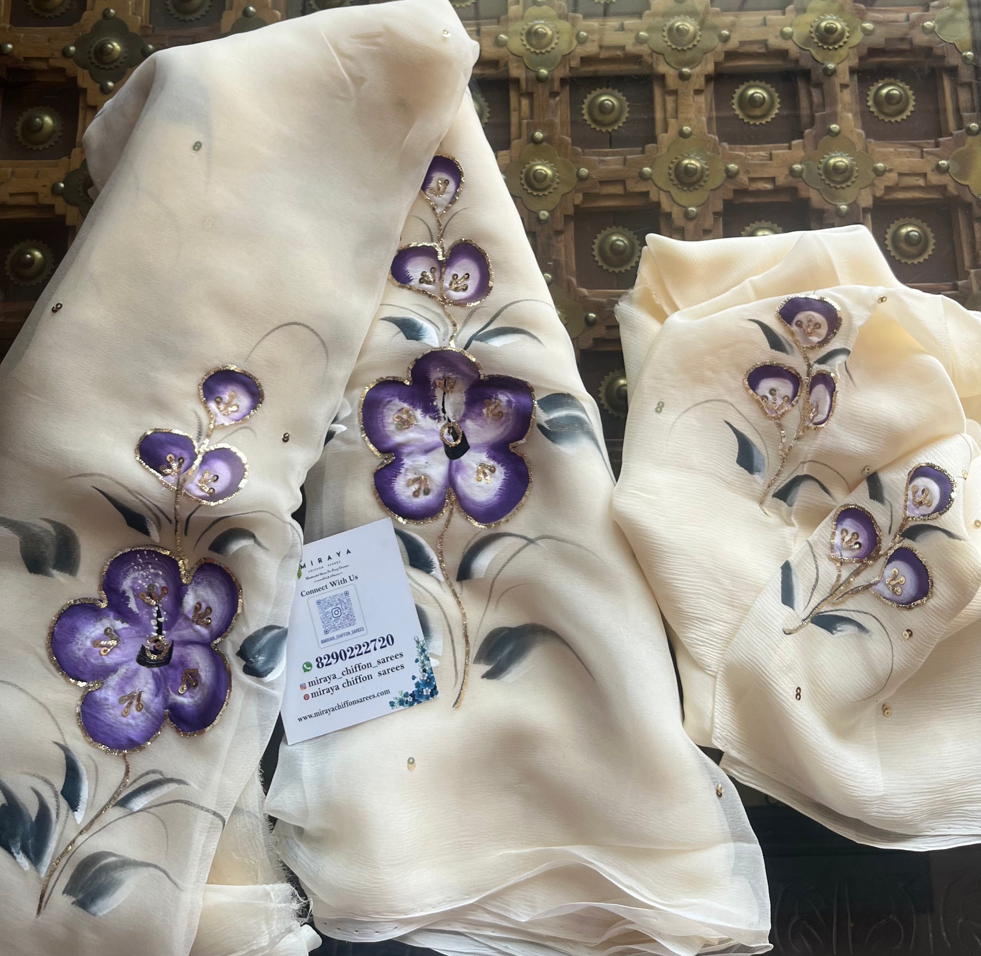 Elevate your style with our hand-embroidered aari work Chiffon saree. Crafted with intricate hand embroidery, this saree is a timeless piece of art. Made with high-quality chiffon, it offers both elegance and comfort. Perfect for any occasion, this saree is a must-have addition to your wardrobe.