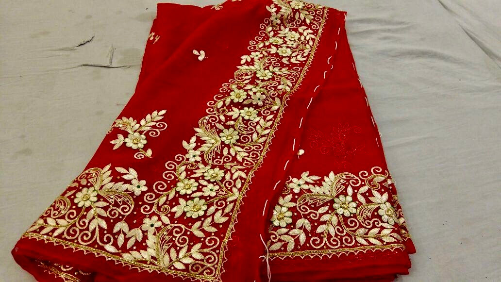 Elevate your style with our Hand Embroidered aari work Chiffon saree. Crafted with intricate hand embroidery, this saree is a timeless piece of art. Made with high-quality chiffon, it offers both elegance and comfort. Perfect for any occasion, this saree is a must-have addition to your wardrobe.