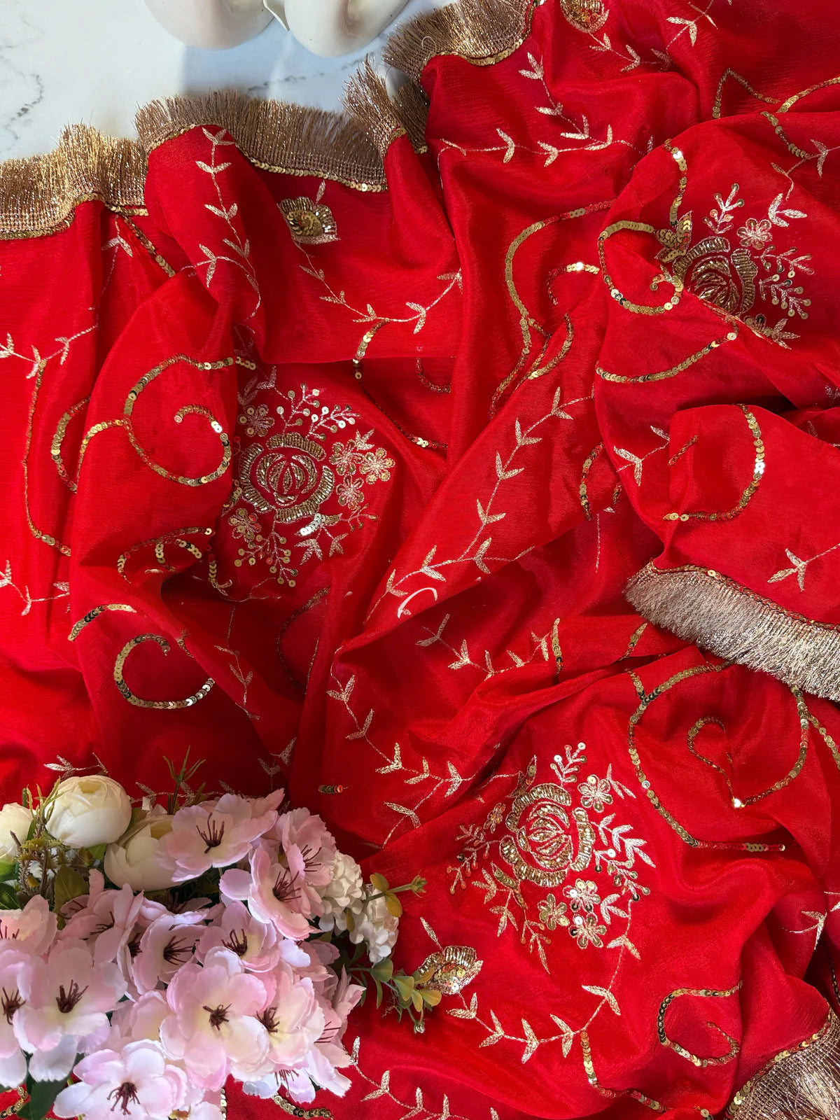 Elevate your style with our Hand Embroidered aari work Chiffon saree. Crafted with intricate hand embroidery, this saree is a timeless piece of art. Made with high-quality chiffon, it offers both elegance and comfort. Perfect for any occasion, this saree is a must-have addition to your wardrobe.