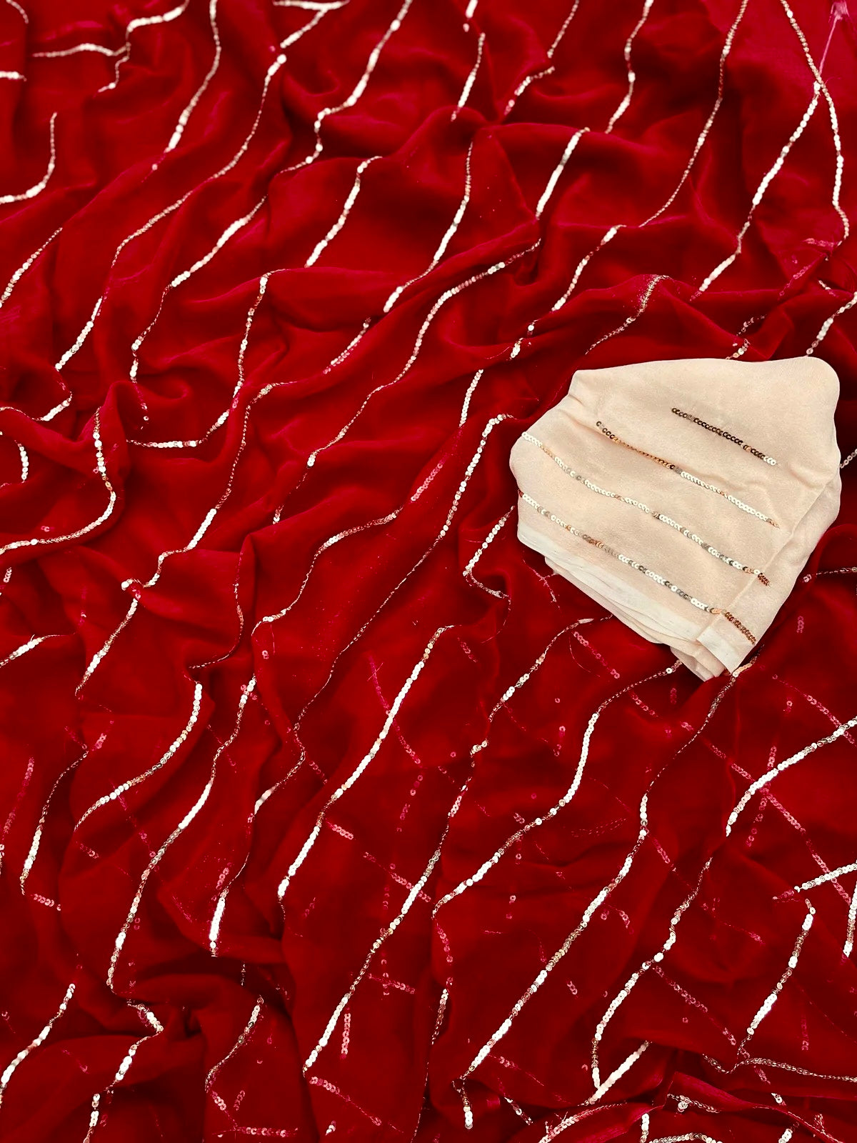 Red sequins stripe saree