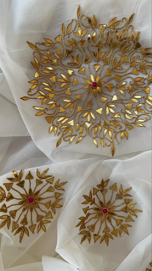 Mukaish is an age-old embroidery, where thin stripsof metallic wire are inserted...